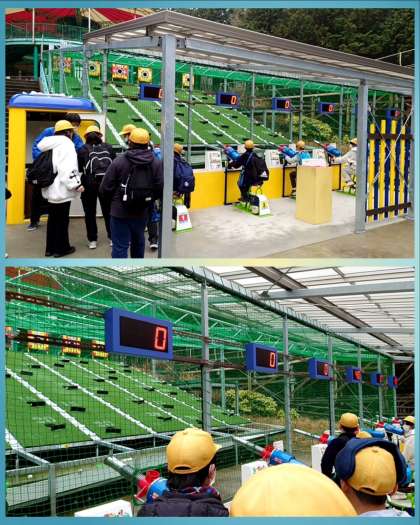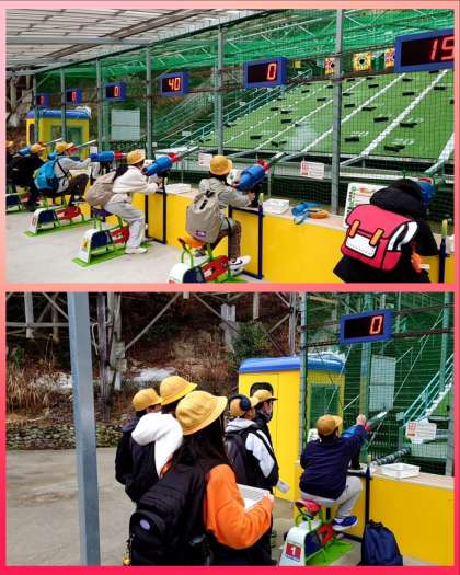 ペダルをこいでパワー充填!ボールをセットして的に当てていますよ☆