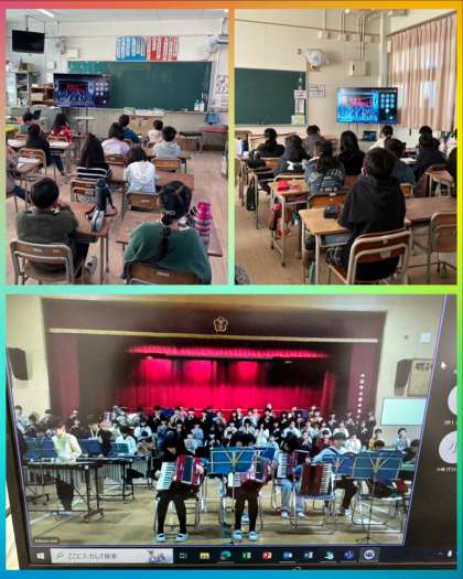 5年生は講堂で6年生の演奏を間近で聴くことができましたが、他学年は講堂には入りきらないので、teamsでの鑑賞会となりました!