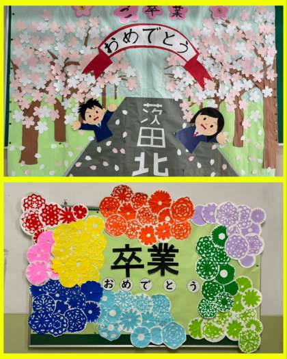 校内のあちこちに卒業をお祝いする掲示に変わっています!