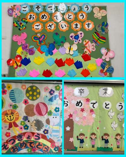 子どもたちが作ったものから、先生たちが作ったものまで様々ですが、お祝いムードになってきました!