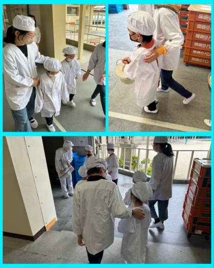 6年生のお兄ちゃん、お姉ちゃんたちがお手伝いに来てくれて一緒に運んだり、配膳したりしました!