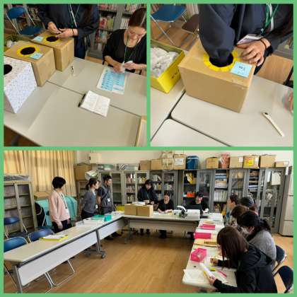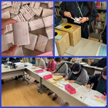 抽選用紙は名前が見えないように折りたたみ、さらにテープで止めて中身がわからないようにして抽選ボックスへ!