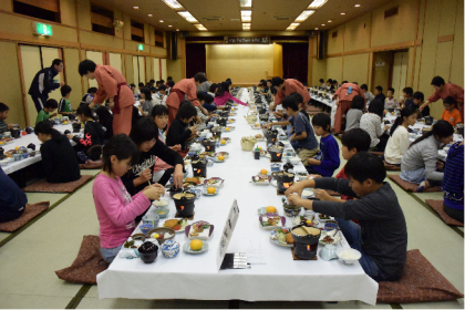 宿舎では、広いお部屋が用意され、豪華な食事と広いお風呂で友だち同士での夜を過ごしました。