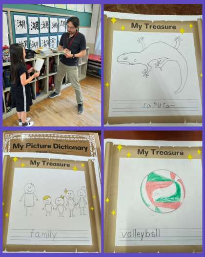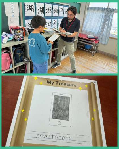 今日はパフォーマンステストと言って、自分の宝物についてカードの絵を見せながら、1人ずつ話をするテストです!