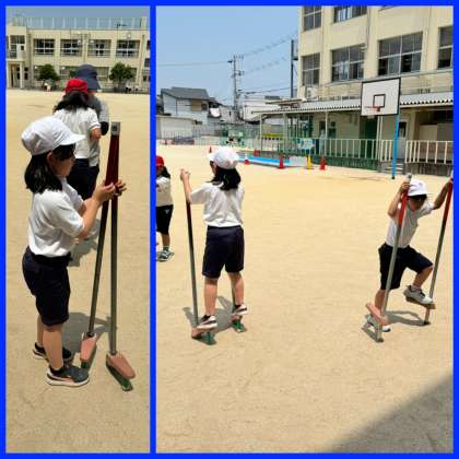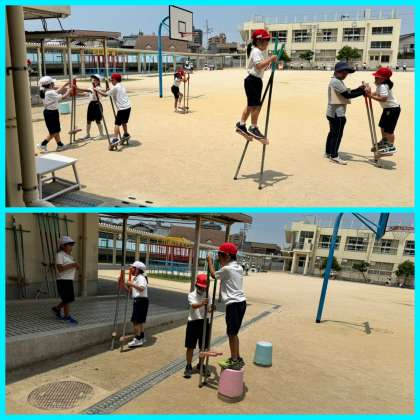 2年生が竹馬にチャレンジしていました!