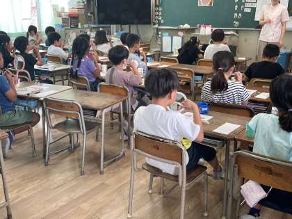 歯科衛生士さんに来ていただき、歯みがきの仕方について教わりました。