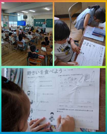 給食では、1人約100グラムの野菜が提供されています!残り200グラムはお家で…