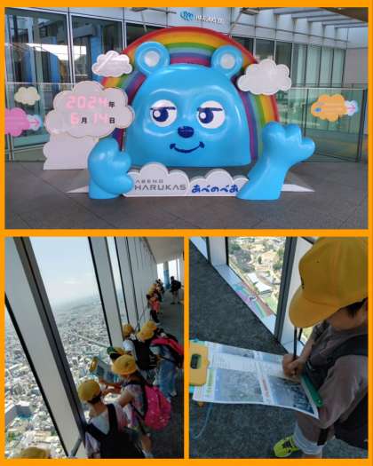 ハルカスから大阪市の様子を見てワークシートに書き込んだり、どんな建物がどっちの方角にに見えるのか学習しました!