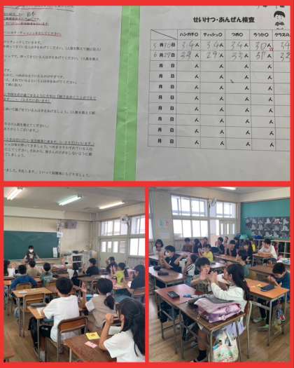 今日は月に1回行っている「せいけつ、あんぜん」検査の日です!健康委員会が担当し、各クラスに行って調べています。