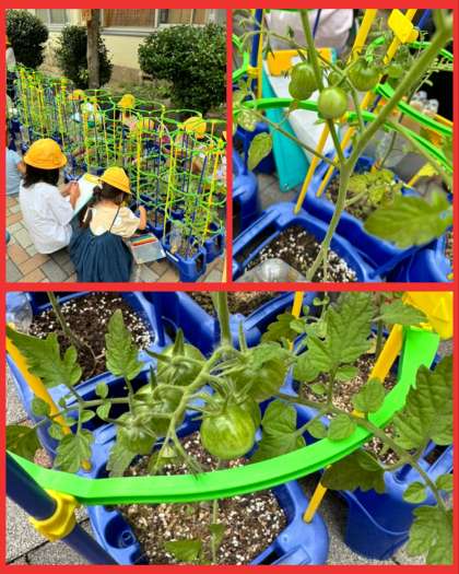 赤く色づいてきているトマトもあり、子どもたちは嬉しそうに観察していました!
