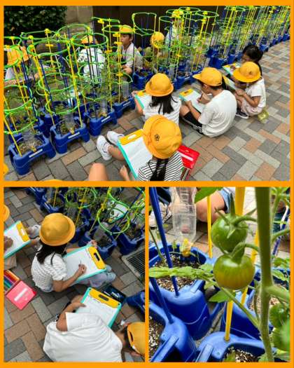 2年生が自分の植木鉢で育てているトマトの観察をしていました!