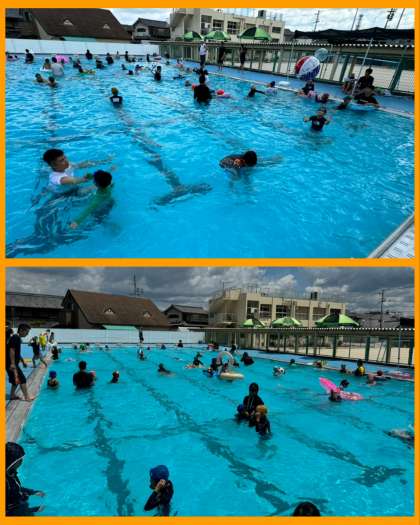 今日はPTA行事の親子プールが開催され、多くの親子が参加してくれました!