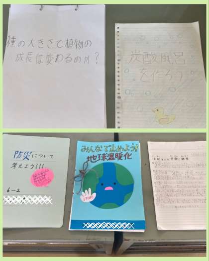 実験したり調べたり、自分なりに工夫して取り組んだものばかりです!しっかりと研究の内容がまとめられてありました。実験の様子の写真を貼ったり、パソコンを使って仕上げたりしているものもありました。