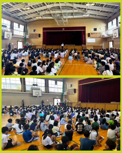 今日の児童朝会では、茨田北小学校創立130周年記念行事についての話がありました。