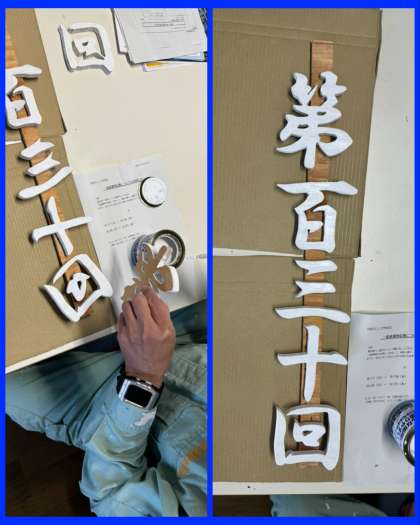 文字を糸ノコギリで切り抜き、色付けをする作業をしています!