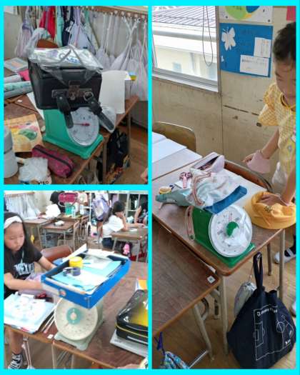 算数の重さの単元で身の回りのものの重さをはかりました。