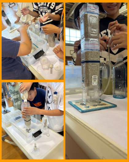 柴島浄水場ではどのように水を各家庭に供給しているのかを学ぶために、濾過装置作りと濾過体験をしました!