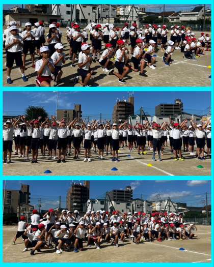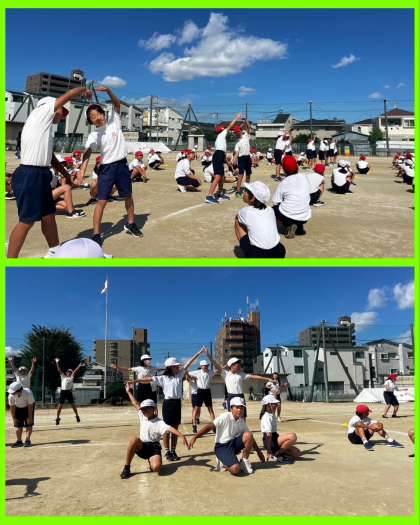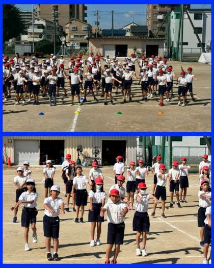 5年生も本格的に隊形移動も入れて第二運動場での練習が始まりました。