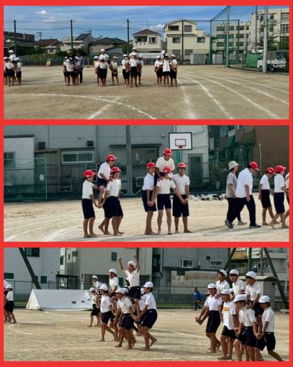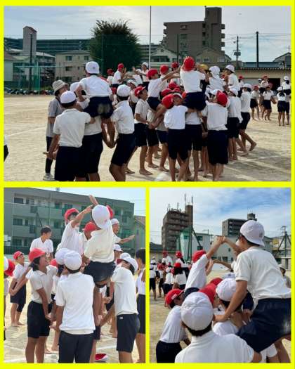 6年生が運動場で初めて、騎馬戦の団体戦の練習を行いました!