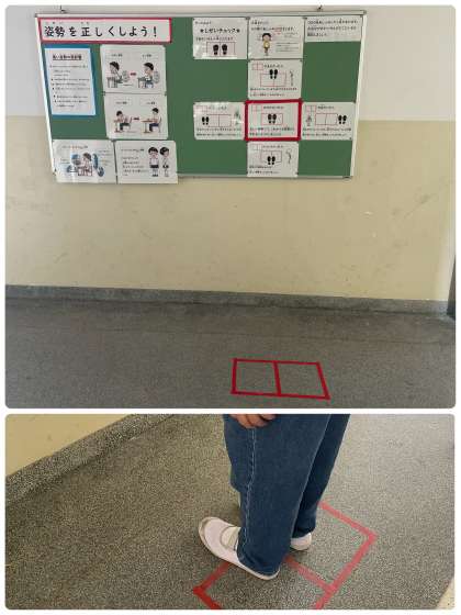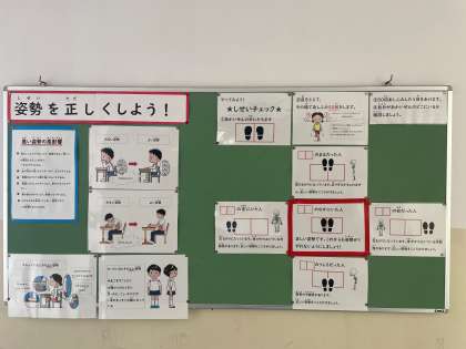 なかなか意識するのが難しい姿勢ですが、姿勢チェックができるような掲示にしました。