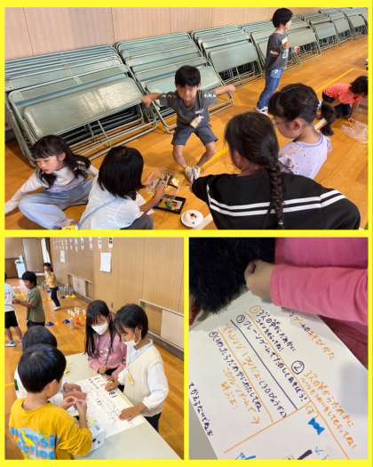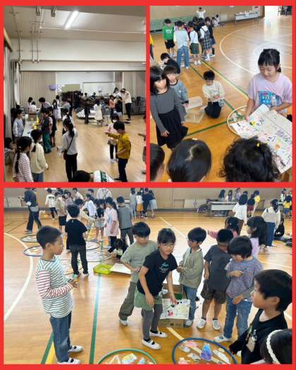 2年生が1年生を招待して、手作りおもちゃで遊ぶ