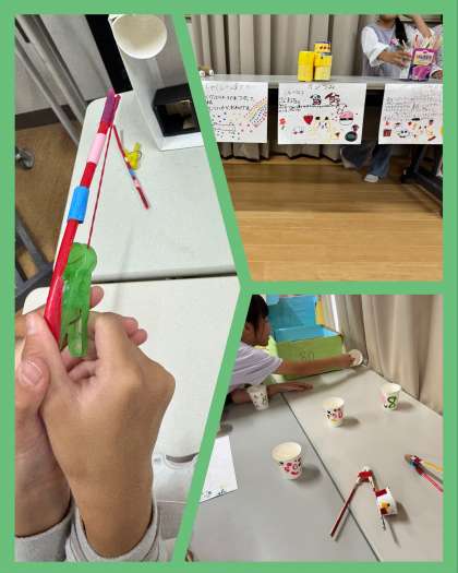 それぞれ2年生が工夫して作ったおもちゃがいっぱい!!