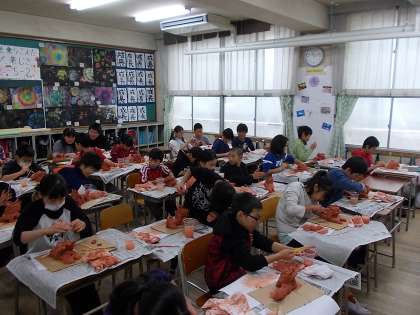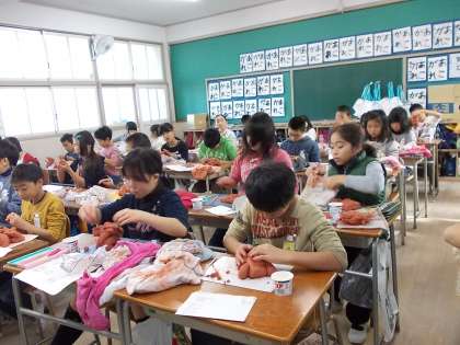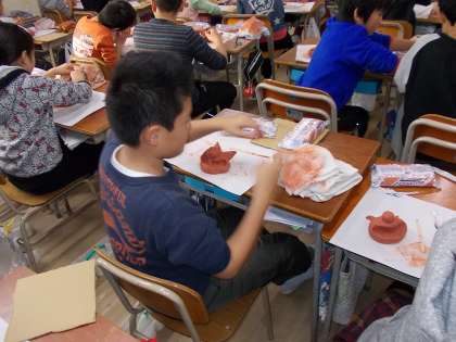 今、5年生は、1月の作品展に向けて「シーサー」を作成しています。