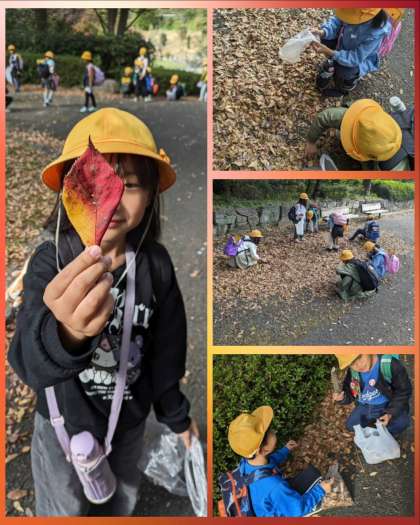 たくさんのどんぐり、綺麗な落ち葉を見つけて