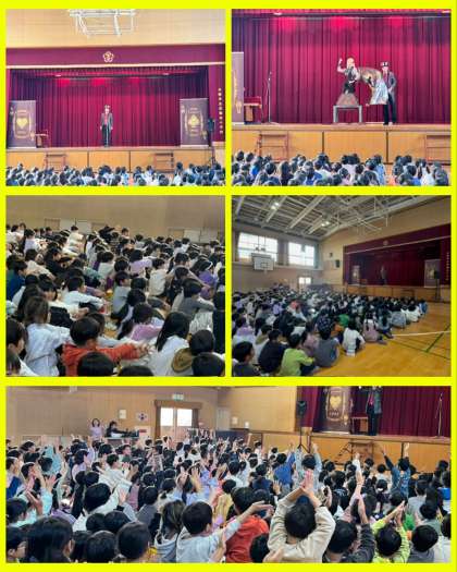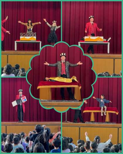 低学年、高学年の2部制でマジックショーを見せてもらいました!