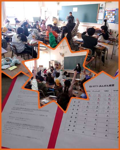 検査項目は、ハンカチ、ティッシュを持って来ているか、爪は伸びていないかのチェックです。