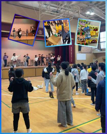 各クラスで出し物をし、劇、縄跳び、ダンス、コント