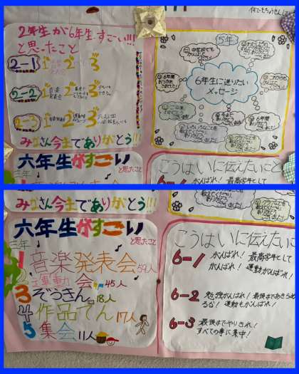 6年生にしてもらって嬉しかったことや6年生のすごいところなどなどが書かれています!