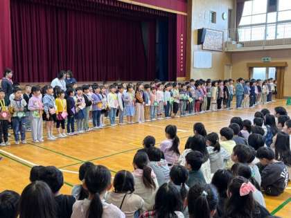 かけてもらったメダルを嬉しそうにみている様子がとても微笑ましいです。元気よくお礼やご挨拶も言えました。