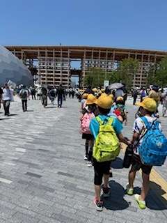 暑さが気になっていましたが、万博会場に着くとさわやかな風が吹いていました。でも、人は多いです。迷子にならないように進みます。