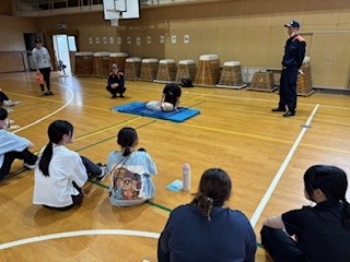 この日は教職員の研修を行いました。毎年プール水泳指導前に行う救急救命講習です。
