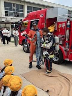 区役所の方からは備蓄品や避難所で使用する備品の説明をしていただきました。