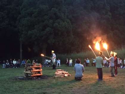 火の神から友情の炎・団結の炎・感謝の炎をもらい、キャンプファイヤーの始まりです。