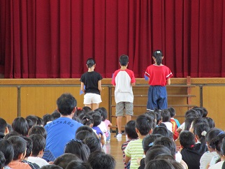 教頭先生から命の尊さ、命の大切さについてのお話や児童からのお別れの言葉で宮垣校長先生とのお別れを惜しみました。