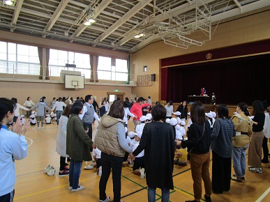 10月24日(火)5時間目に1年生の学年集会がありました。フラフープを送るリレーや、運動会で行ったダンスと玉入れの披露など、お家の方と楽しい時間を過ごすことができました。各クラスに頂いた賞状に大喜びの一年生でした。保護者の方々のご協力、ご参加ありがとうございました。
