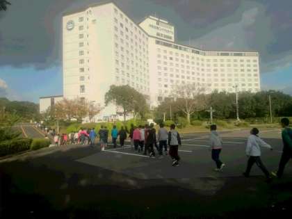 ホテルに着き 開舎式の後、避難訓練を行いました。