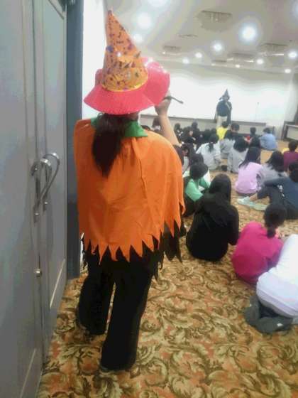 先生からのハッピーハロウィンと言う言葉とともに、始まりました。クイズ大会は大盛り上がり。