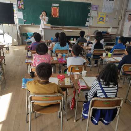 11月10日の2,3時間目に歯科衛生士さんによる歯みがき指導がありました。歯垢が虫歯の原因になることを教えていただき、赤い薬剤を一人ひとりの歯につけてもらって磨き残しがないか確認しました。そのあとに歯の磨き方に丁寧に教えていただきました。今日学んだことをこれからも続けて虫歯ゼロを目指してほしいです。