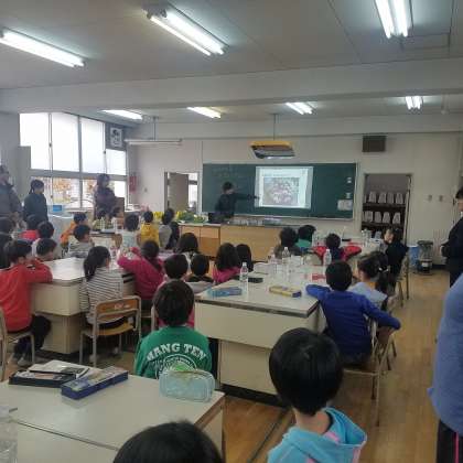 11月22日水曜日の3・4時間目に三井アウトレットモール鶴見のなにわ花市場からゲストティ−チャーをお招きして出前授業をしていただきました。和歌山県で栽培されたスプレーマムと千葉県で栽培されたシマハランを使って実際にはさみで切ったり、手でさいたりしながらペットボトルに生けていきました。また、スプレーマムを作っている農家の方もわざわざ和歌山県から来て頂いて初めて聞く色々なお話を児童は興味深く聞いていました。終わってからも、すごい体験ができたと笑顔がいっぱいでした。