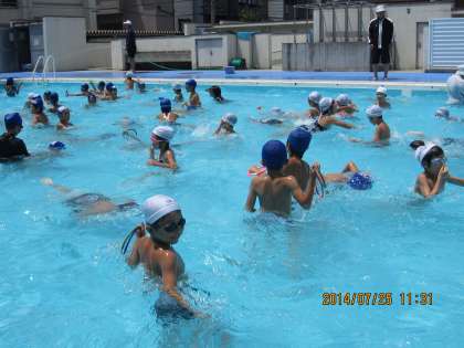 夏休み中は1・2年生が合同でプールに入るとあって、いつもとは違う楽しさを味わっています。
