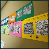 4年生の教室の壁面には「カクカクぐるぐるの世界」という作品が掲示してあります! ...