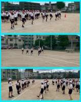 全学年でスポーツテストの計測を行っています! 50メートル走、立ち幅跳び、反復横...