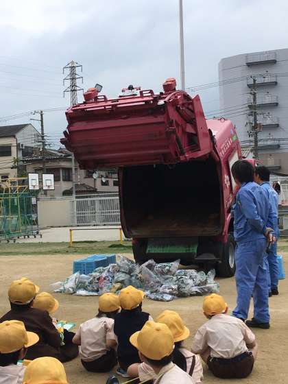 みんなはじめての体験で興味津々な様子でゴミ収集についての仕事を理解したようです。