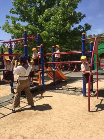 5月22日(水)鶴見緑地公園に校外学習へ行きました。最初に子どもの森へ行き、遊具で遊びました。ルールを守り、友だちと一緒に楽しく遊ぶことができました。