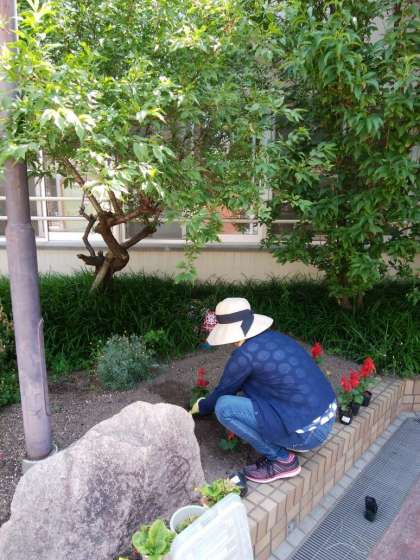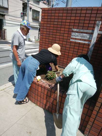 PTAの皆さんと地域の東さんの協力のもと、正門周りの花の苗植えをしていただきました。植えた花は子ども達の心をなごましてくれることでしょう。忙しい中ありがとうございました。