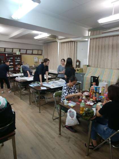 児童会主催の「つる小まつり」にPTAもお店を出していただいています。花植えの後、会議室においてその準備をしています。ありがとうございます。